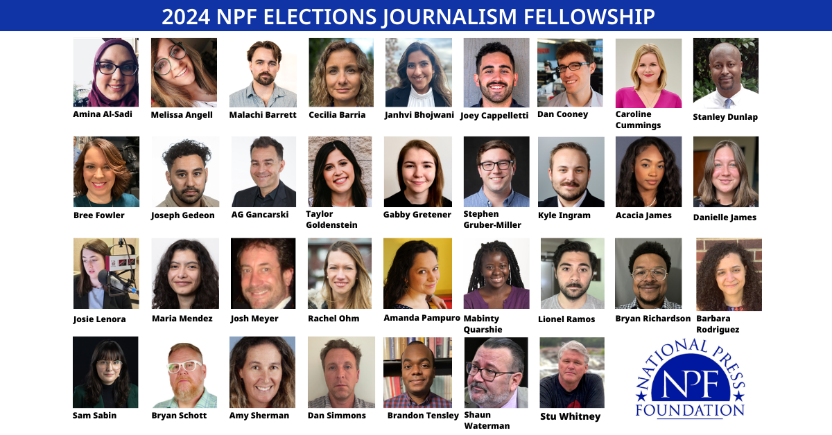 Congratulations to the 34 journalists selected for the National Press Foundation’s 2024 Elections Journalism Fellowship! The journalists will gather in Detroit, Michigan, July 28-30, to deeply explore covering elections themselves, not horse-race politics.